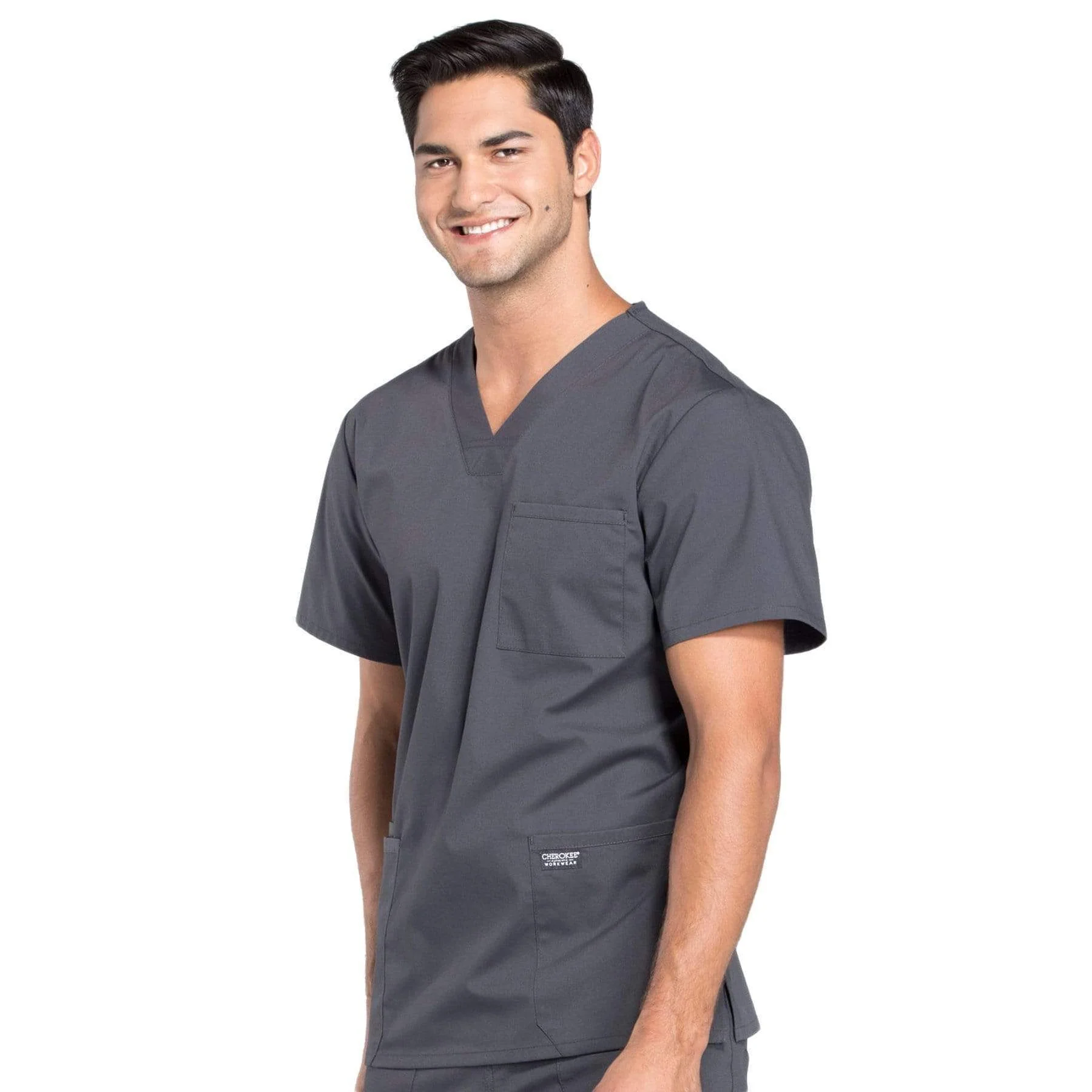 Cherokee Workwear Professionals WW695 Scrubs Top Mens V-Neck Pewter
